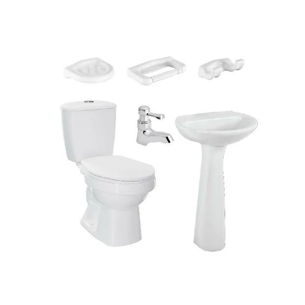 Combo Corona Laguna Balta Blanco: sanitario, lavamanos con pedestal, grifería y accesorios